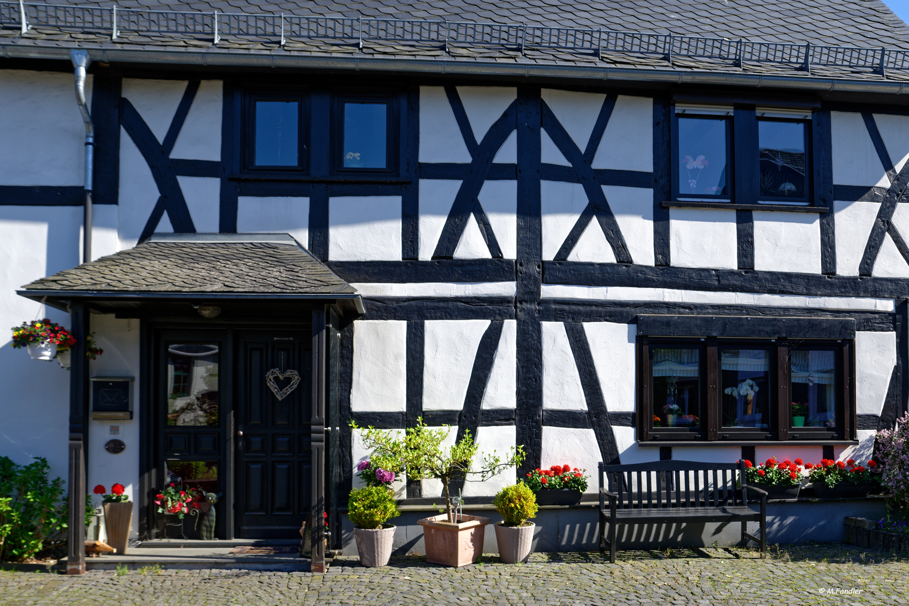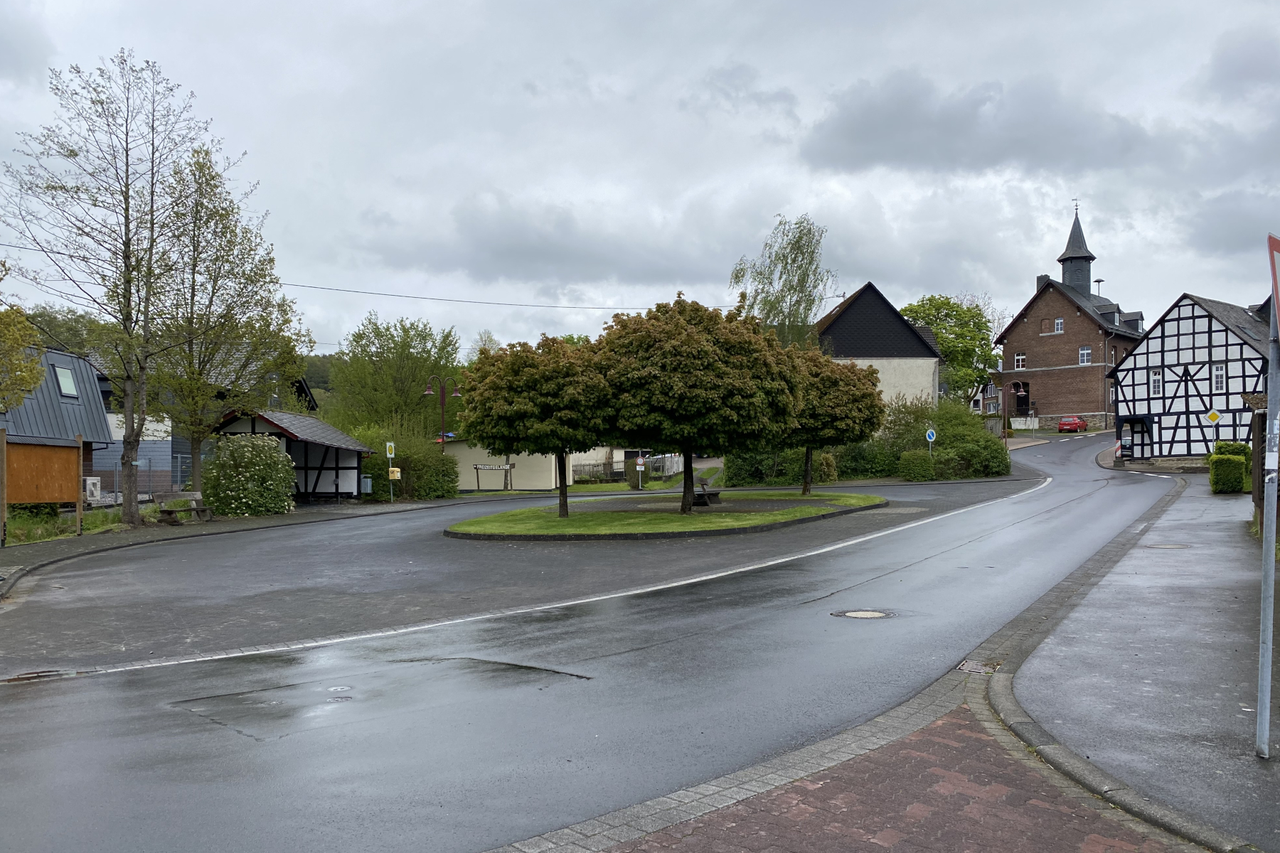 13 BrunnenplatzDer Ortskern im "Unterdorf" wird geprägt von den Fassaden alter, aber neu renovierter Fachwerkhäuser und der ehemaligen Dorfschule mit Glockenturm.